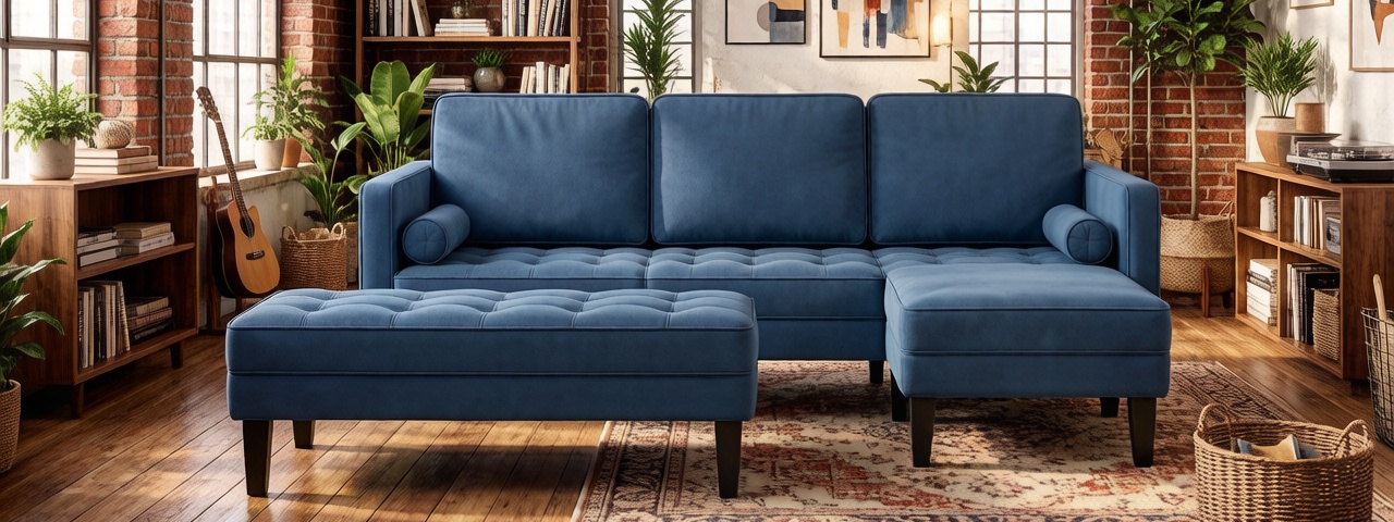 Tiefseeblaue Farbtöne · Wolkenweiches Sofa