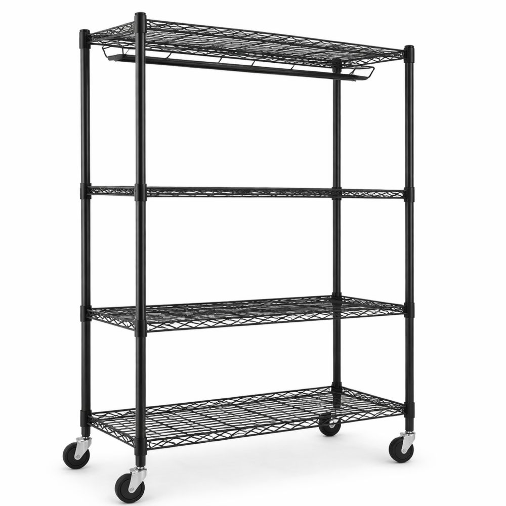 Höhenverstellbarer Schwerlast-Kleiderständer mit Rollen und Ablage