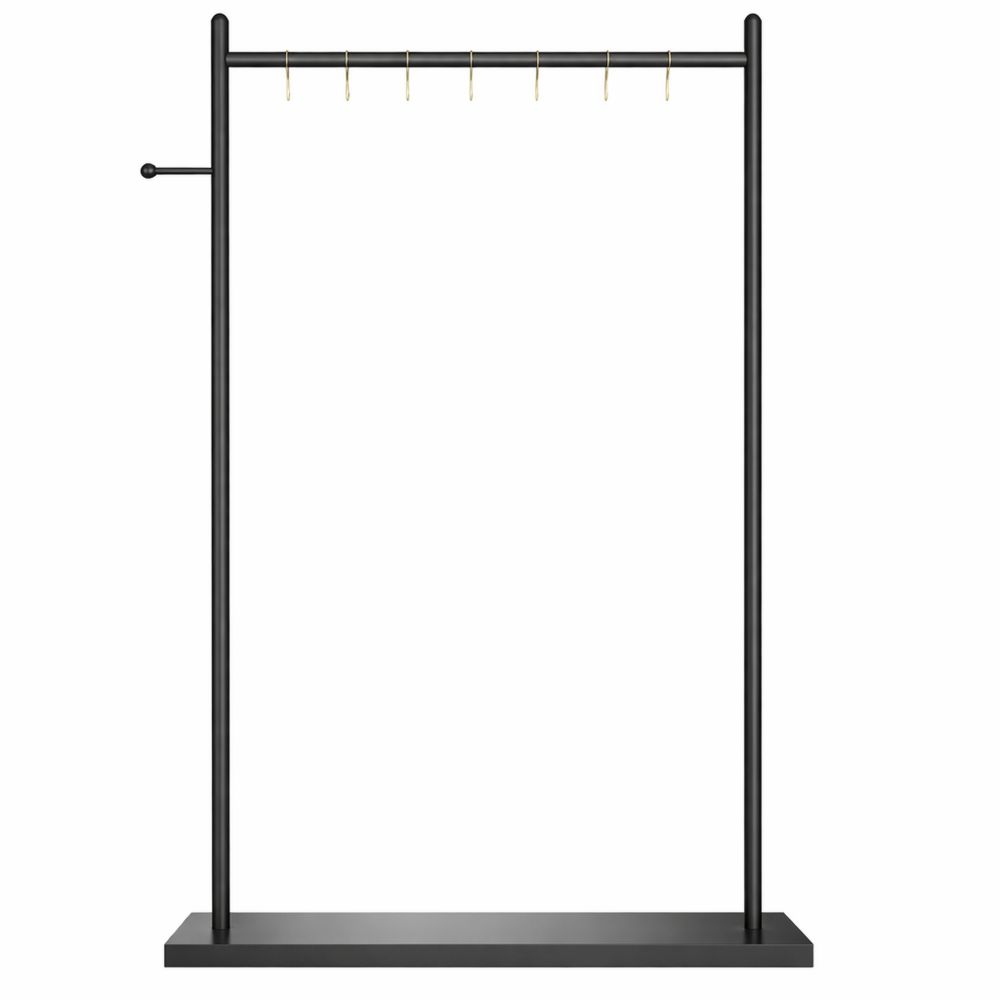Moderner freistehender Garderobenständer aus Metall mit Rockplatte und Haken, schwarz