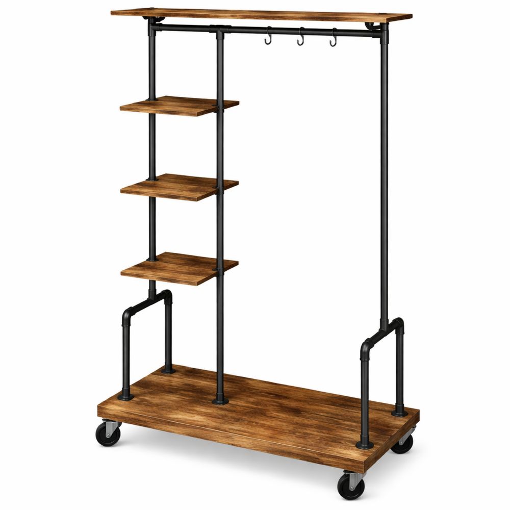 Mobiler Kleiderständer mit Ablagen im Industrie-Design