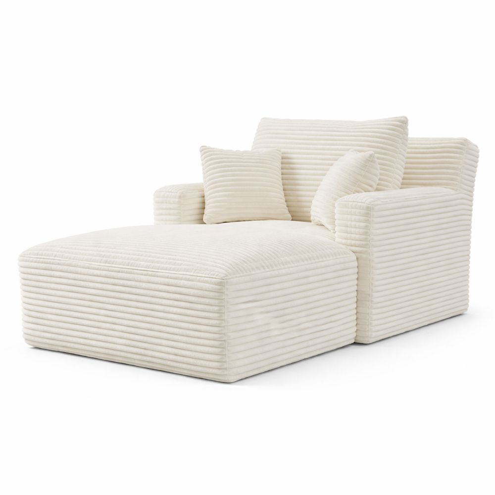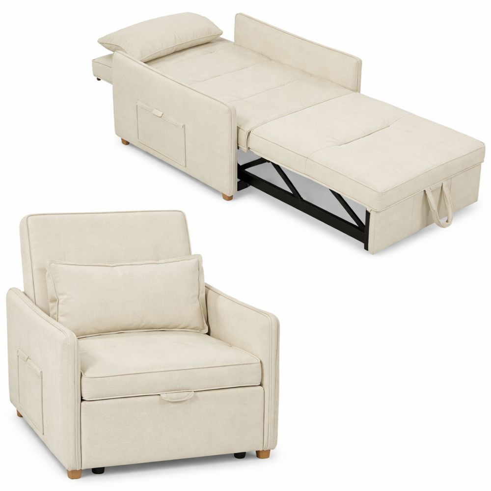 Multifunktionaler Schlafsessel mit Bettfunktion, Verstellbare Rückenlehne, Breite Sitzfläche, Inklusive Lendenkissen, Seitentasche, Chenille-Optik, Cremeweiß