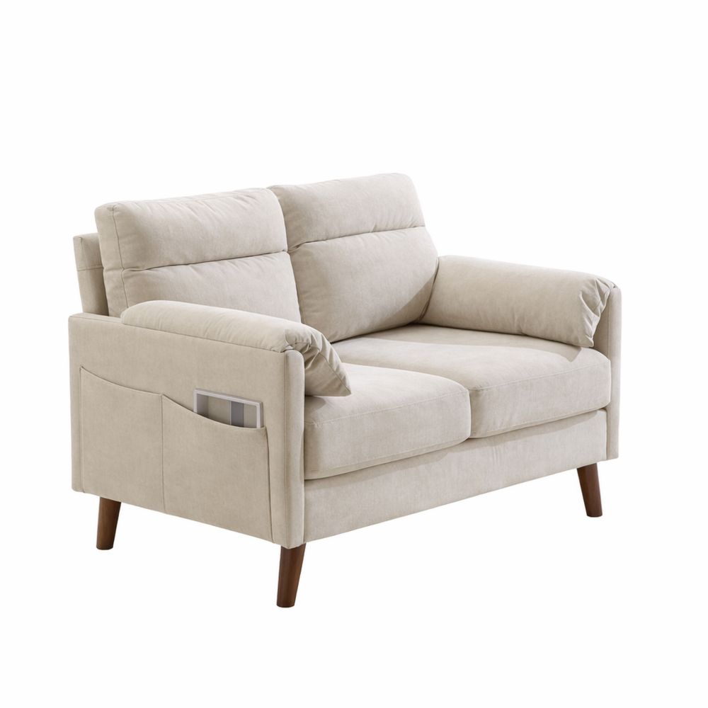 Zweisitzer Stoffsofa mit weichen Armlehnen, kompakte Couch für Wohnzimmer oder Büro, einfache Montage, beige