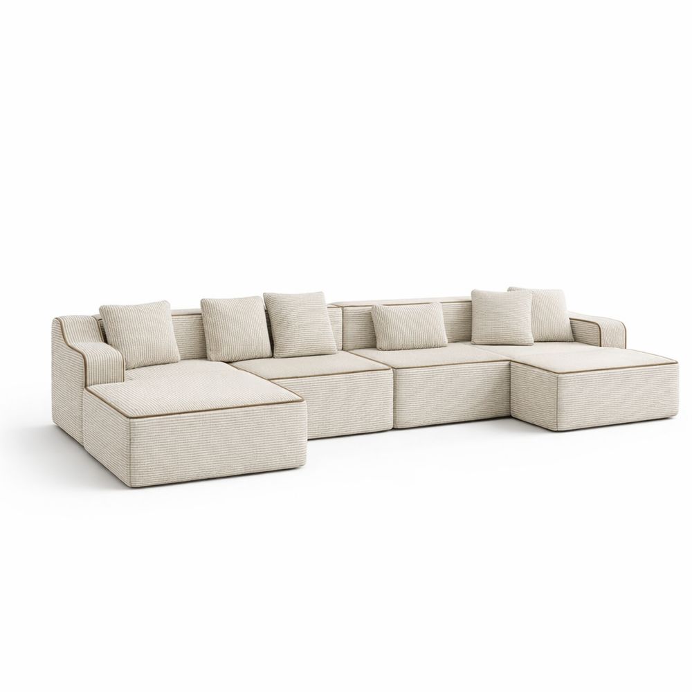 Modulares U-Form Sofa mit Schlaffunktion und 6 Kissen, Beige