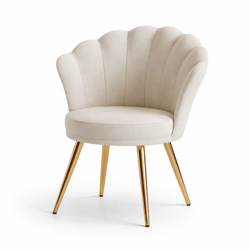[Samtstuhl mit Muscheldesign] Dieser Stuhl zeichnet sich durch sein muschelförmiges Design, kurvige Linien und eine samtige Sitzfläche mit goldenen Beinen aus. Er eignet sich als Gäste-, Schmink- oder Beistellstuhl und bringt Weichheit in jeden Raum. [Weicher Sitz] Der 3,2 Zoll dicke Sitz ist mit einem hochdichten Schwamm gefüllt und bietet Komfort und Weichheit. Seine elastische Polsterung sorgt für langlebige Unterstützung. [Ergonomisches Design] Der 18,5 Zoll breite Sitz mit hoher, gebogener Rückenlehne unterstützt eine aufrechte Sitzhaltung. [Stabile Struktur] Der Stuhl verfügt über einen Rahmen aus FSC-zertifiziertem Holz und metallene Beine mit goldener Oberfläche. Verstellbare Fußpolster bieten Stabilität und schützen den Boden vor Kratzern.
